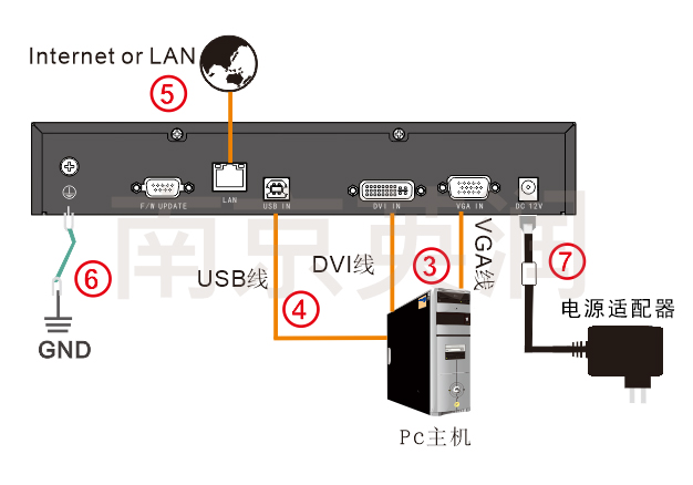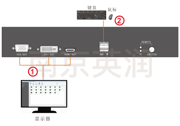 - 可接入一台主机进行切换,接入主机支持 VGA 和 DVI 接口。
